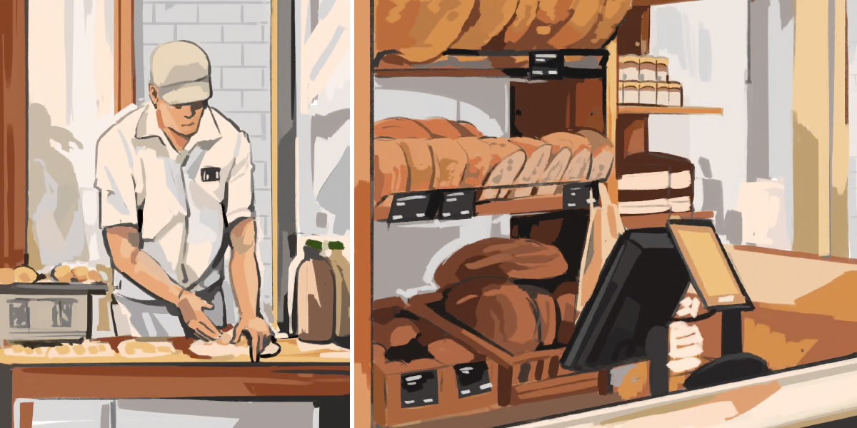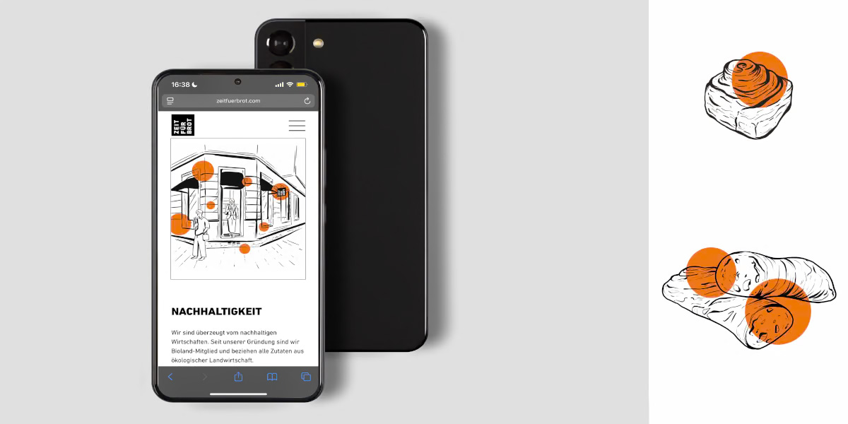 Aus dem Briefing für die Berliner Bäckerei Zeit für Brot entstanden Produktillustrationen, Standortmotive und lebendige Szenen aus Bäckerei und Café, die für Speisekarten, Verpackungen und Social Media eingesetzt werden können. Die gestalterisch klaren Ansätze zeigen in den Anwendungen und Mock-ups die perfekte Integration in das Markenbild.